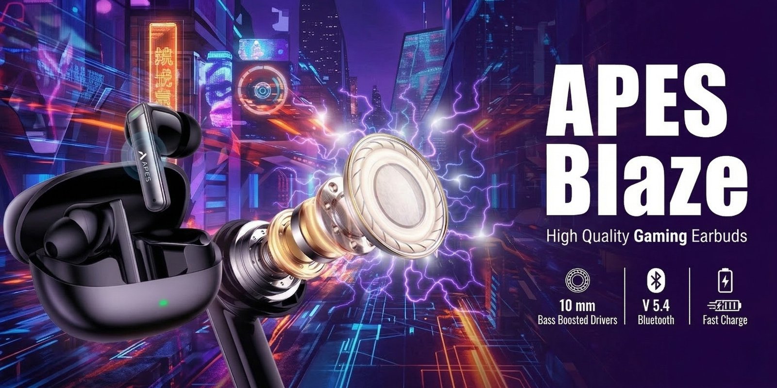 Apes Blaze Tws imageAPES Blaze TWS | Wireless Bluetooth Earbuds | 10mm Drivers | 10 Min Charge = 3H Play | 5.5H Playback Original price was: ₹3,999.00.Current price is: ₹749.00.July 27, 2025